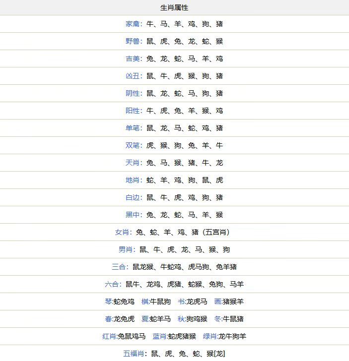 | 家禽:牛马羊鸡狗猪 野兽:鼠虎兔龙蛇猴 |